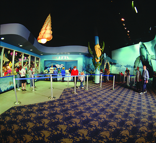 The entrance to the aquarium, after hours the ropes are removed and the area is replaced with tables and chairs, and other seating arrangements, most noteably is a large "throne-like" chair that sits at the entrance of the shark tunnel.